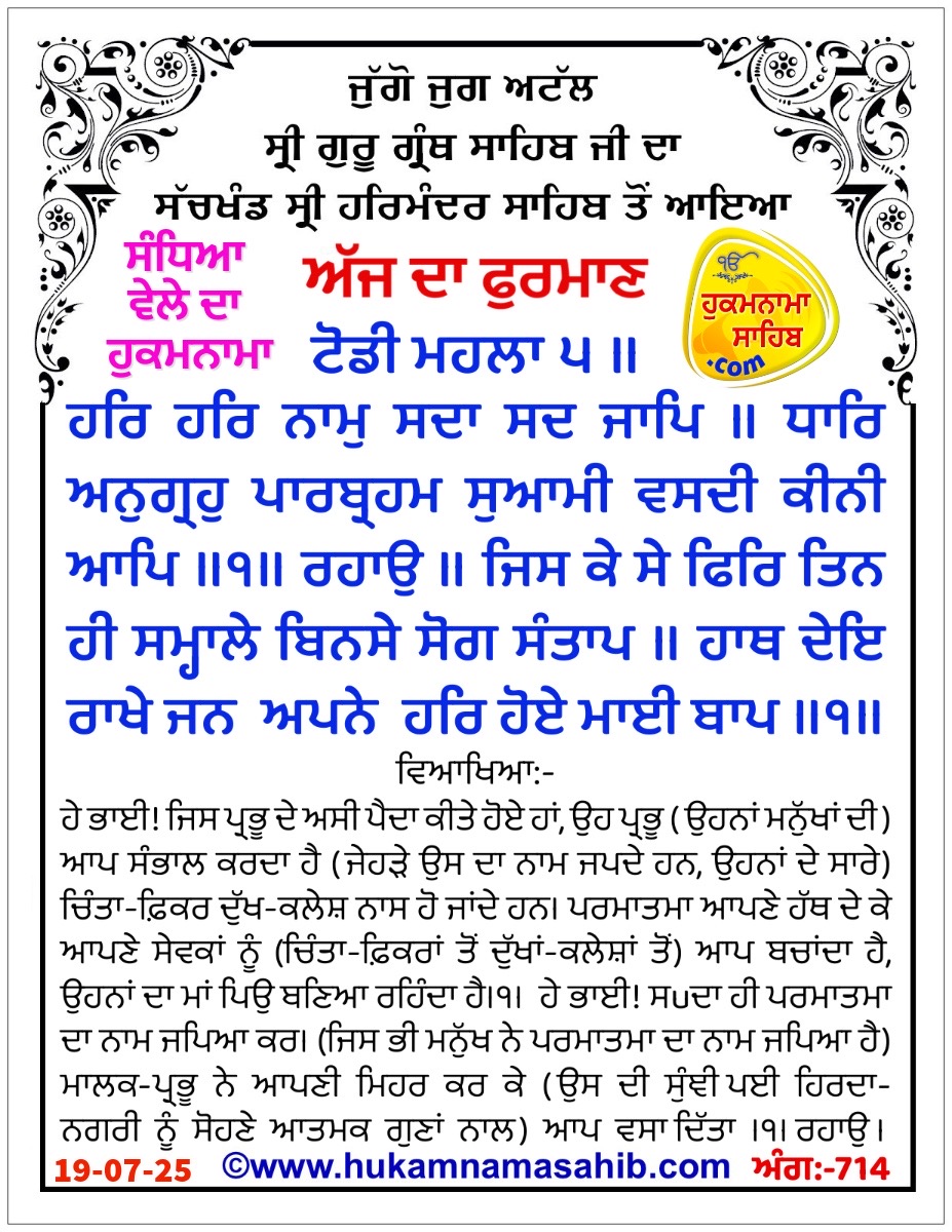 Sandhia Vele da Hukamnama Sachkhand Sri Darbar Sahib Amritsar