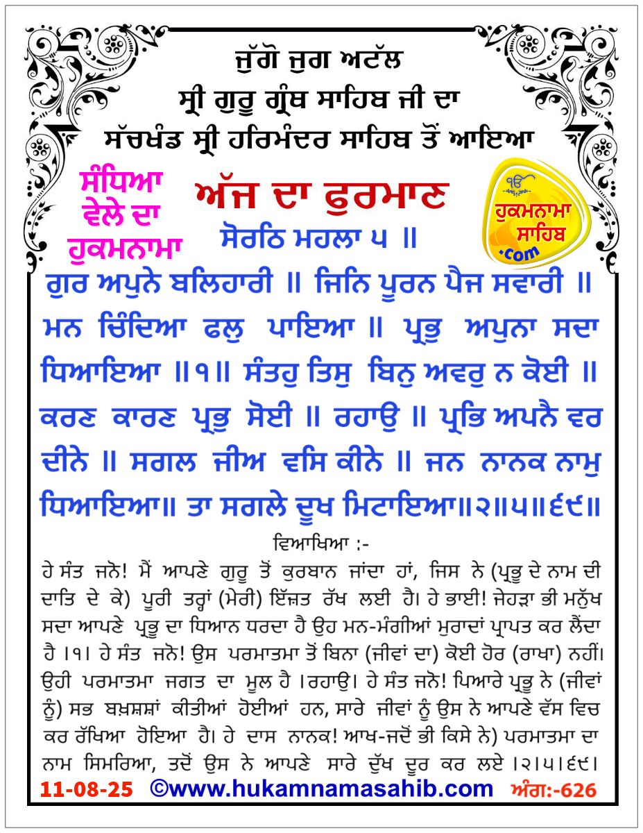 SANDHIYA VELE DA HUKAMNAMA SRI DARBAR SAHIB, AMRITSAR