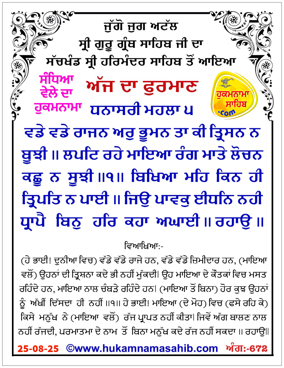 SANDHIA VELE DA HUKAMNAMA SRI DARBAR SAHIB, AMRITSAR