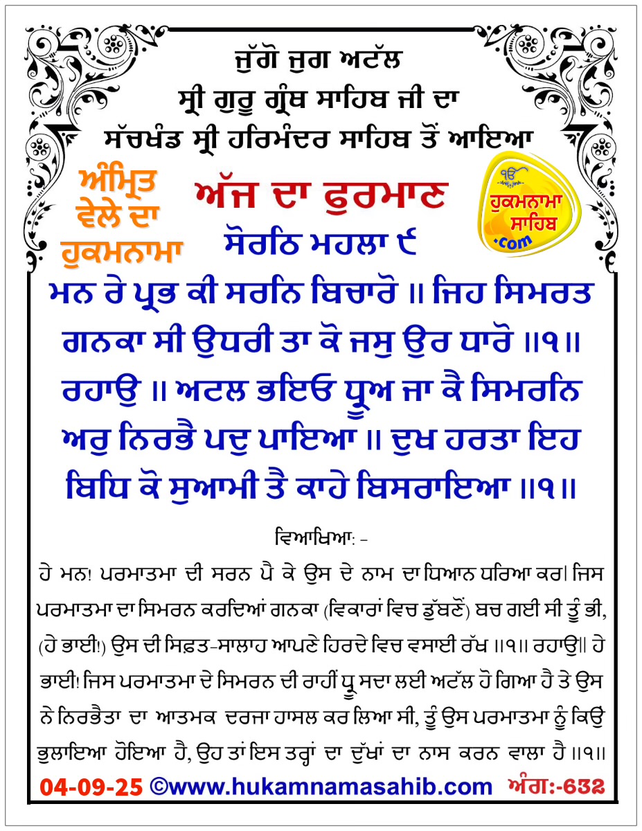 Amrit Wele Da Mukhwak Sachkhand Sri Harmandir Sahib Amritsar