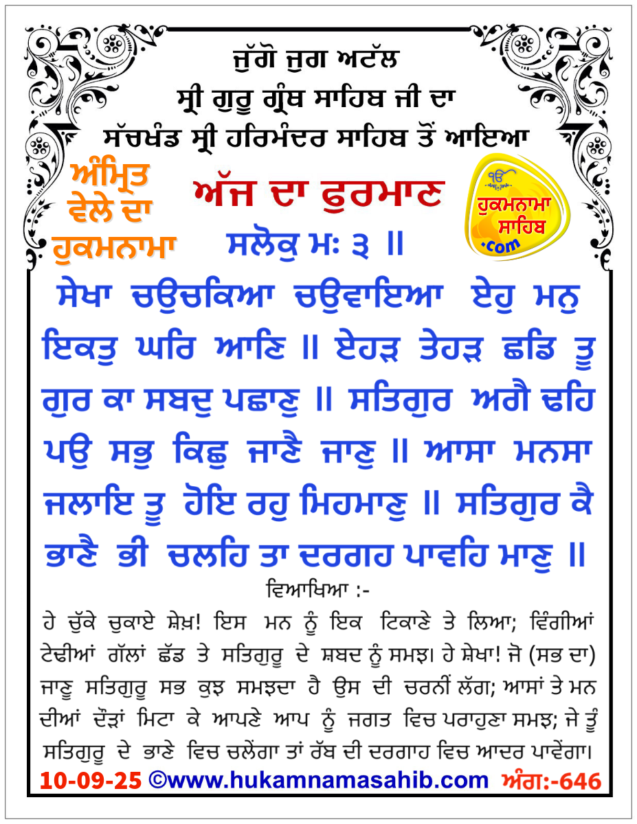 AMRIT VELE DA HUKAMNAMA SRI DARBAR SAHIB AMRITSAR