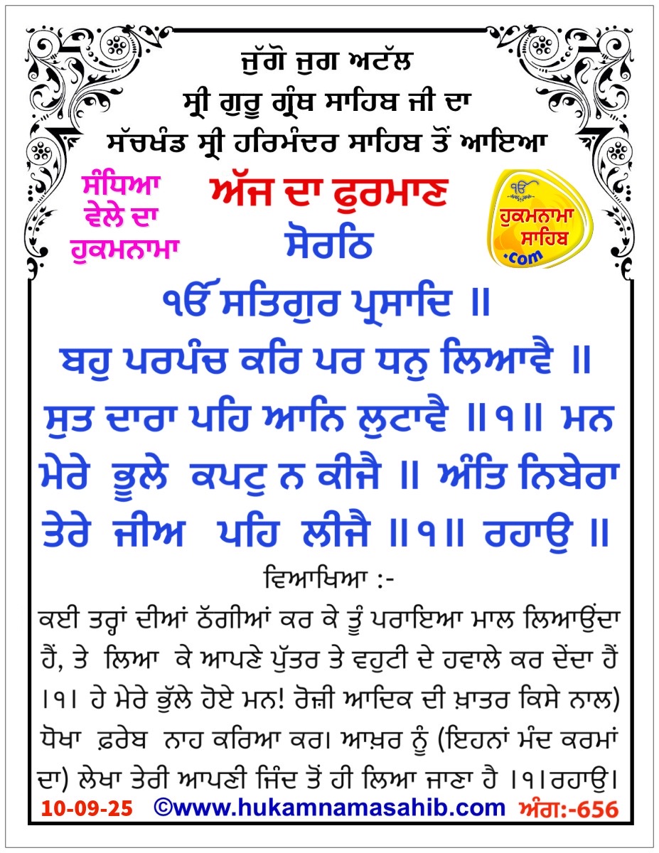 SANDHYA VELE DA HUKAMNAMA SRI DARBAR SAHIB SRI AMRITSAR