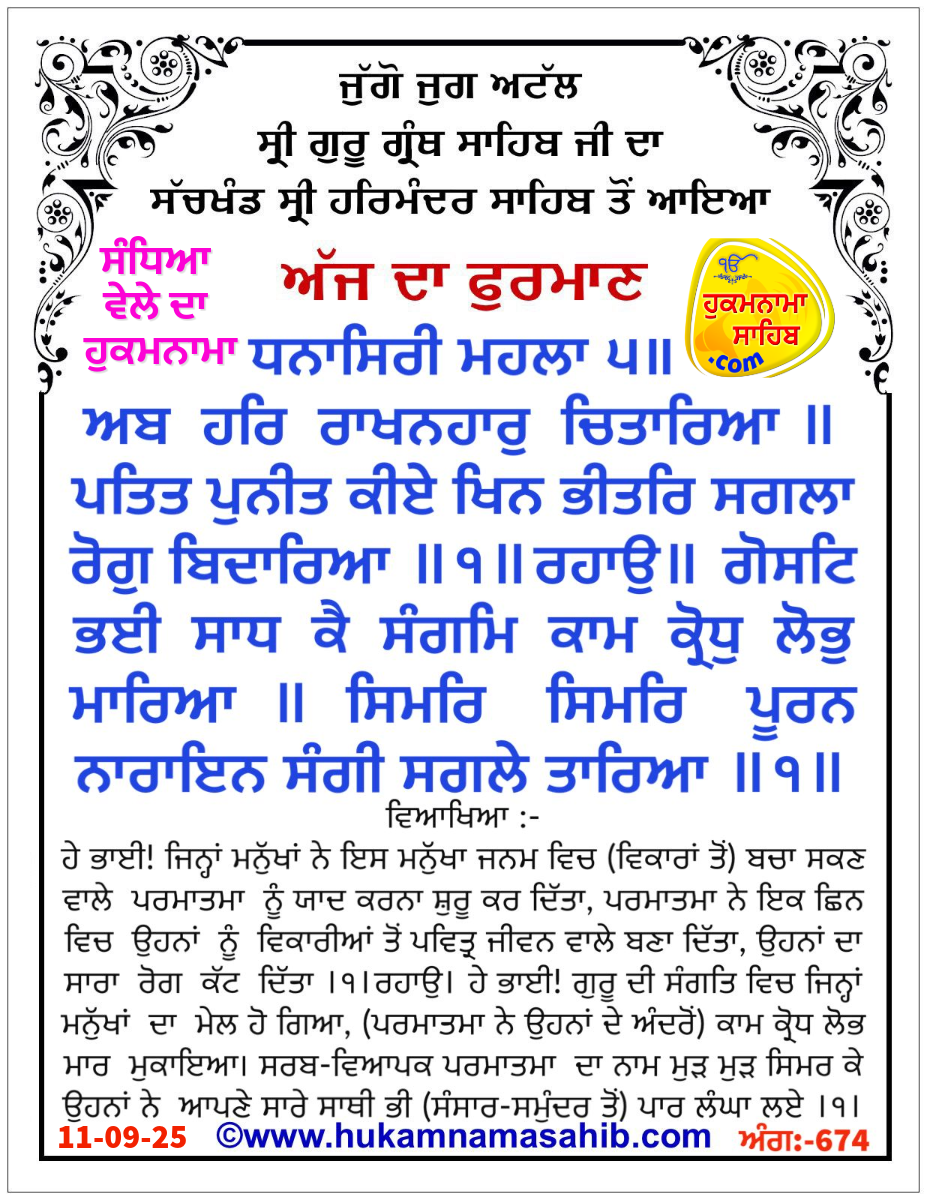 SANDHIYA VELE DA HUKAMNAMA SRI DARBAR SAHIB, SRI AMRITSAR