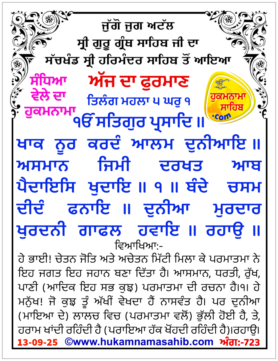 Sandhya vele da Hukamnama Sri Darbar Sahib Amritsar