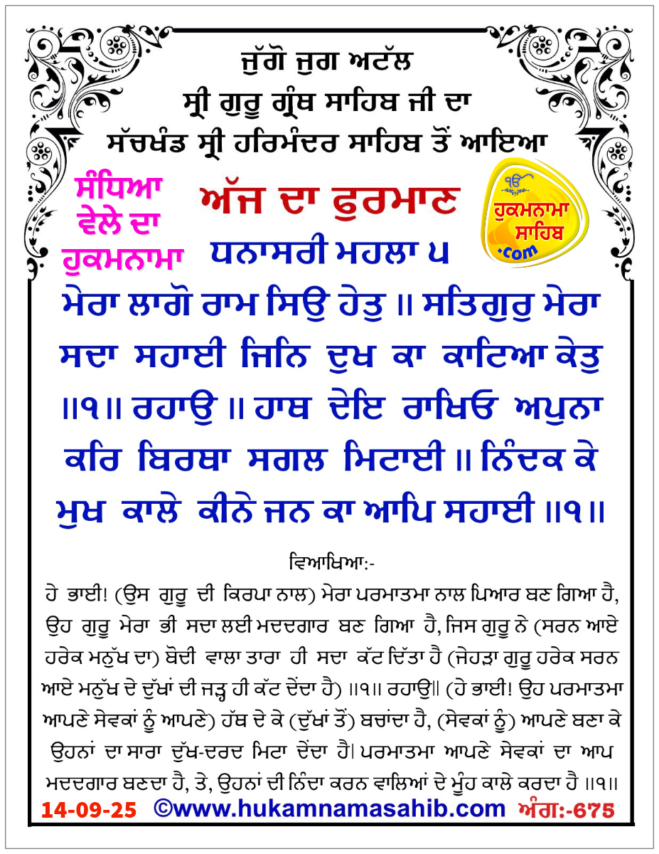 SANDHIA VELE DA HUKAMNAMA SRI DARBAR SAHIB SRI AMRITSAR