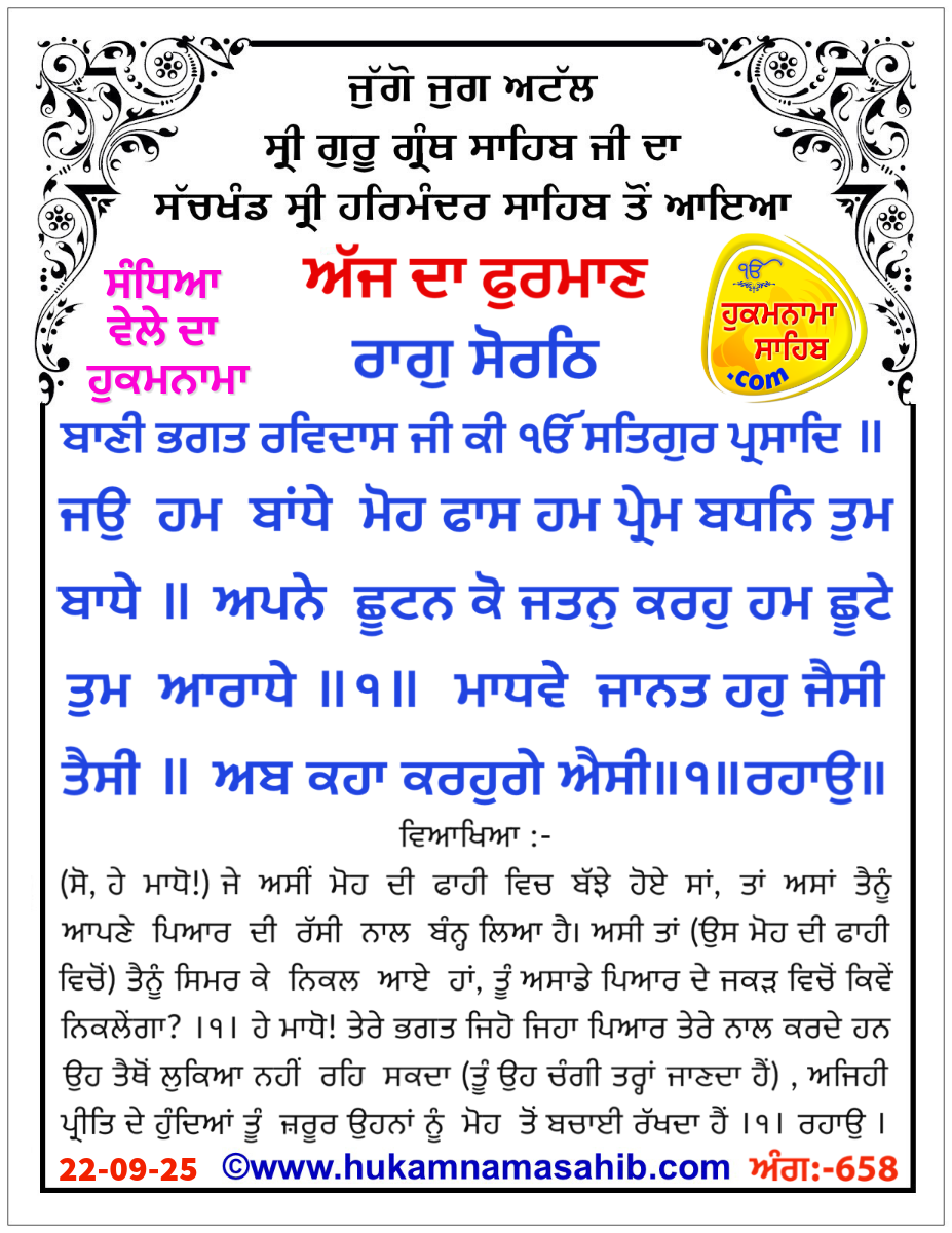 SANDHIA VELE DA HUKAMNAMA SRI DARBAR SAHIB AMRITSAR