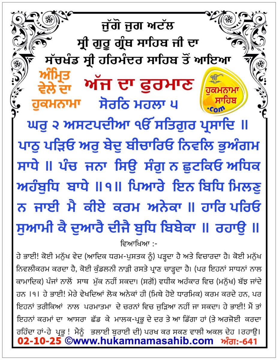 AMRIT VELE DA HUKAMNAMA SRI DARBAR SAHIB AMRITSAR