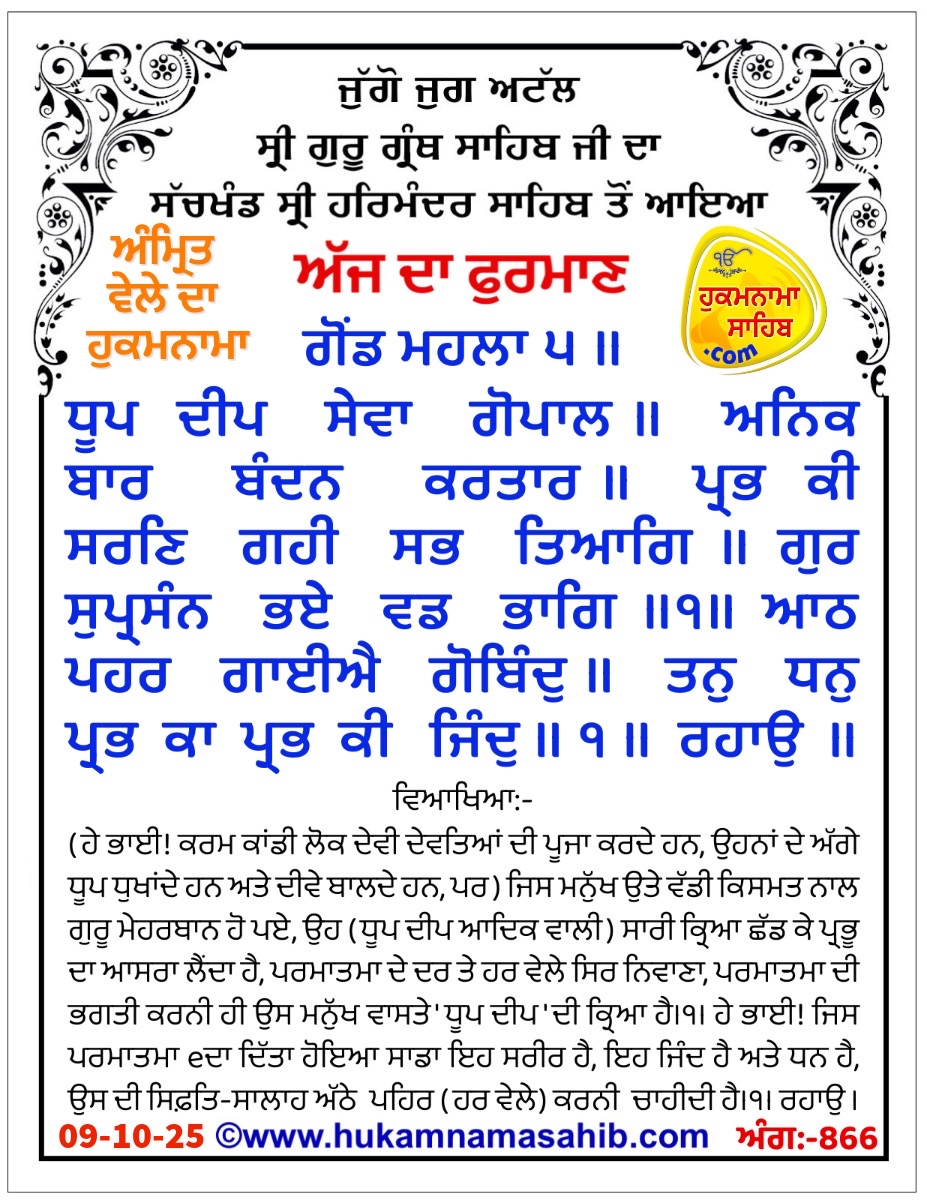 AMRIT VELE DA HUKAMNAMA SRI DARBAR SAHIB AMRITSAR
