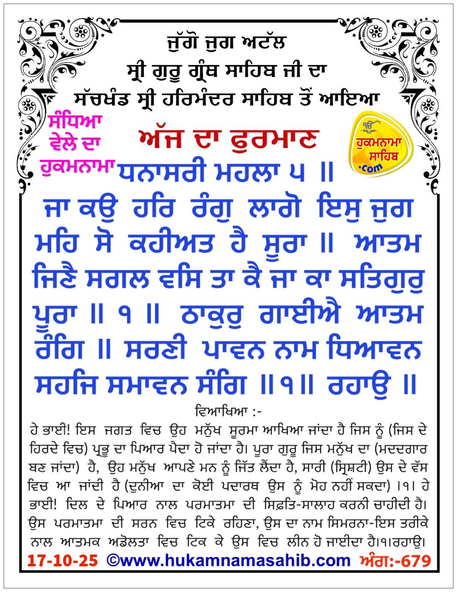 Sandhya Vele Da Hukamnama Sachkhand Sri Darbar Sahib Amritsar