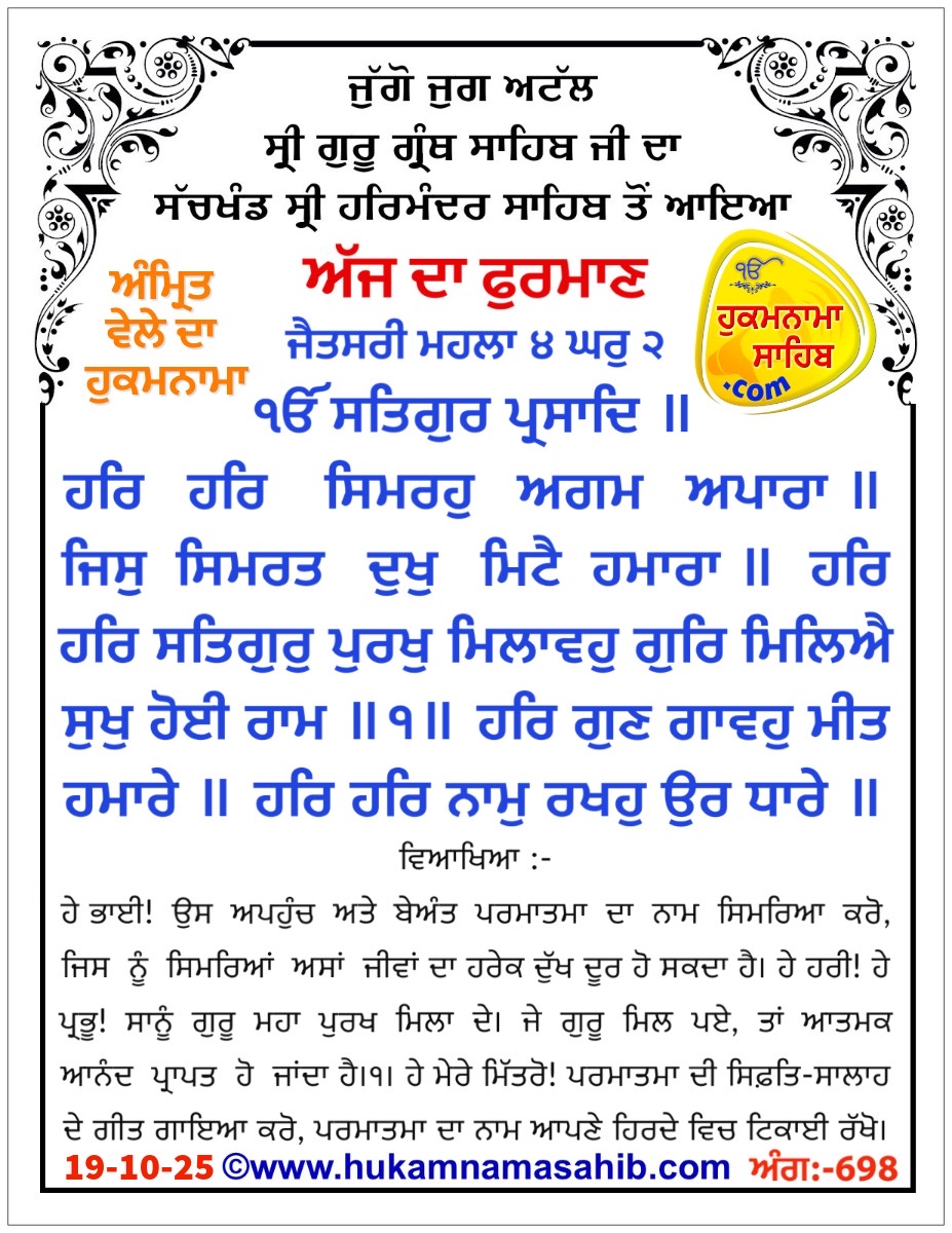 Amrit Vele Da Hukamnama Sri Darbar Sahib, Amritsar
