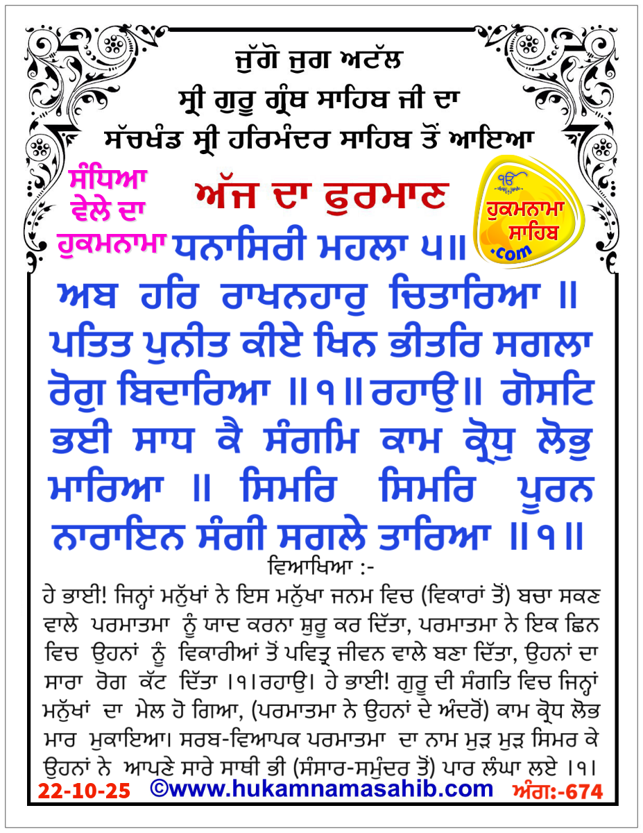 SANDHIYA VELE DA HUKAMNAMA SRI DARBAR SAHIB, SRI AMRITSAR