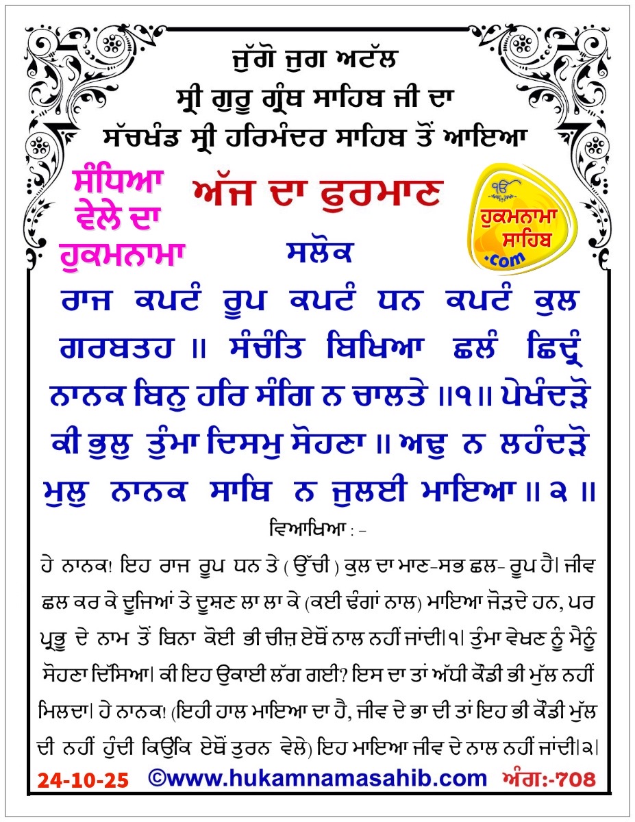 Sandhia Vele Da Hukamnama Sachkhand Sri Darbar Sahib, Amritsar