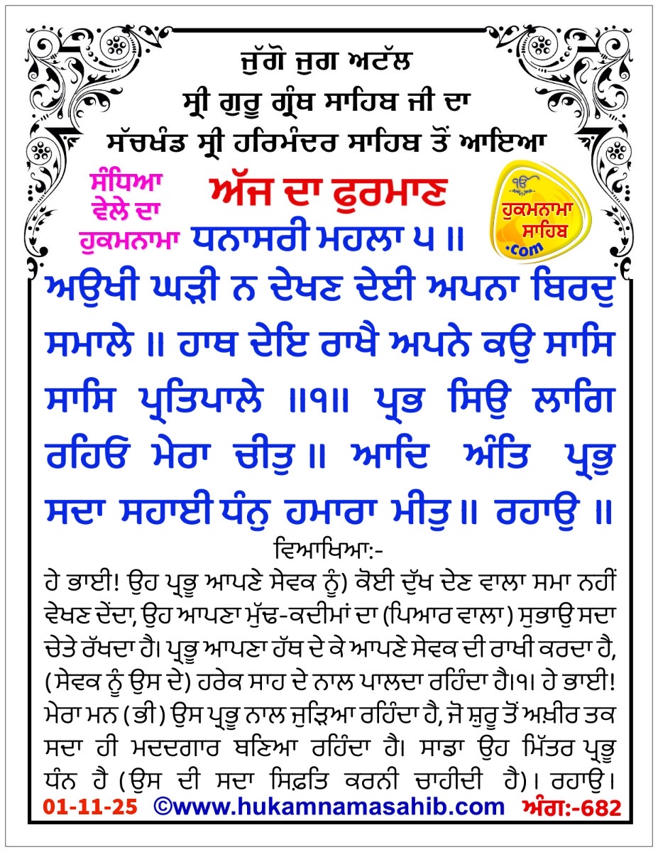 Sandhiya Vale da Hukamnama Sri Darbar Sahib Sri Amritsar