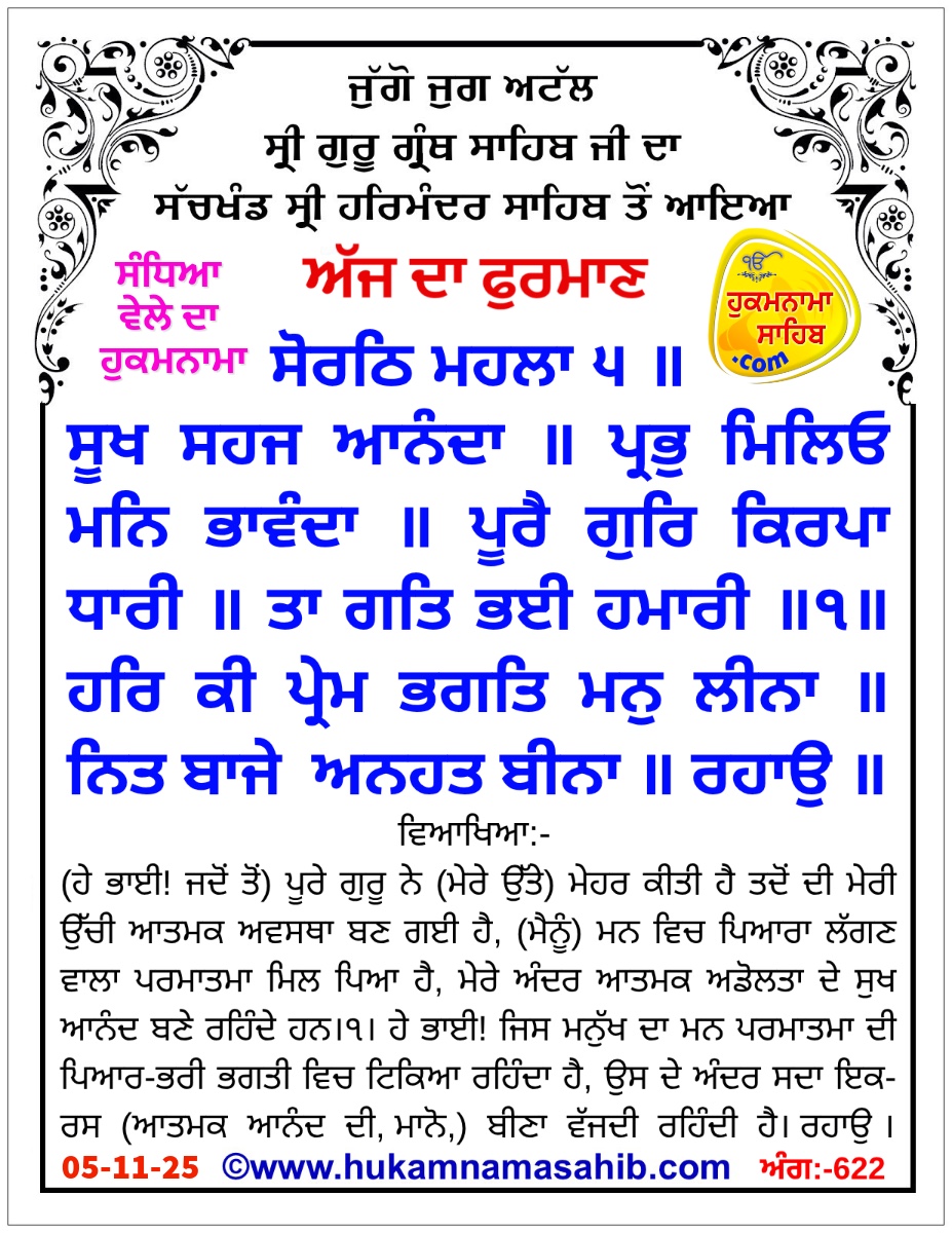 SANDHYA VELE DA HUKAMNAMA SRI DARBAR SAHIB SRI AMRITSAR,