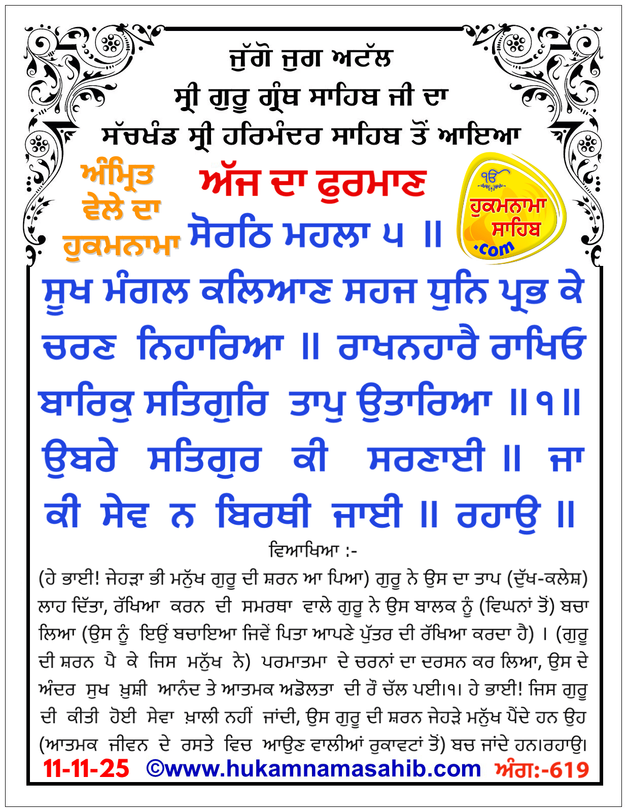 Amrit Vele da Hukamnama Sri Darbar Sahib, Amritsar Sahib