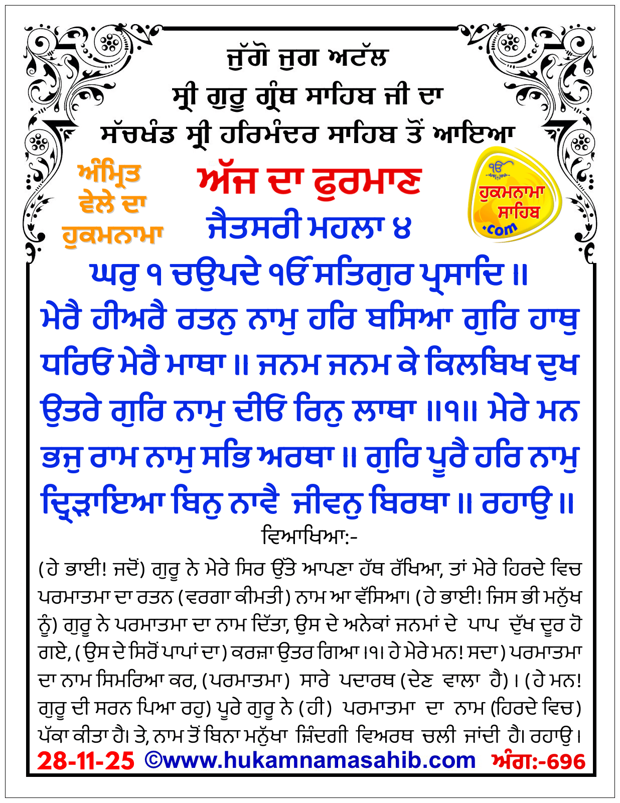 Amrit Wele Da Mukhwak Sachkhand Sri Harmandir Sahib Amritsar