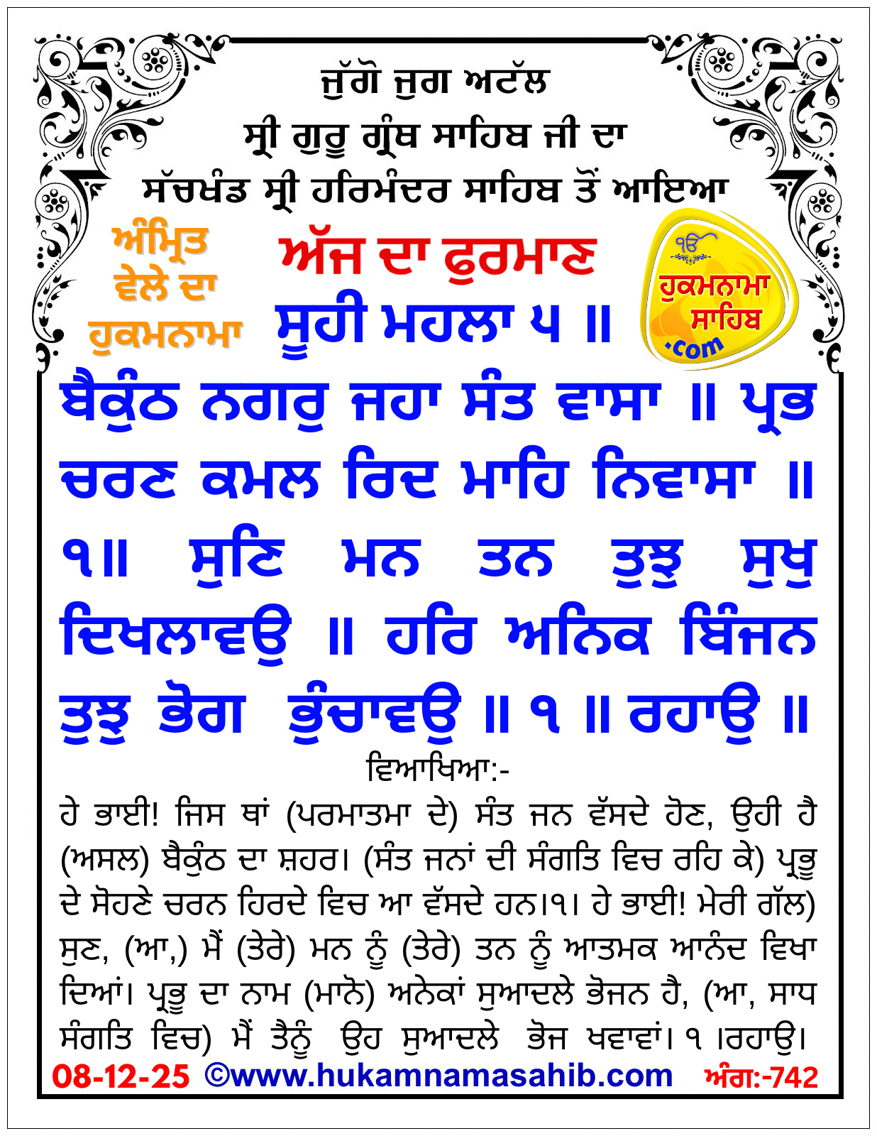 Amrit Vele da Hukamnama Sri Darbar Sahib, Sri Amritsar