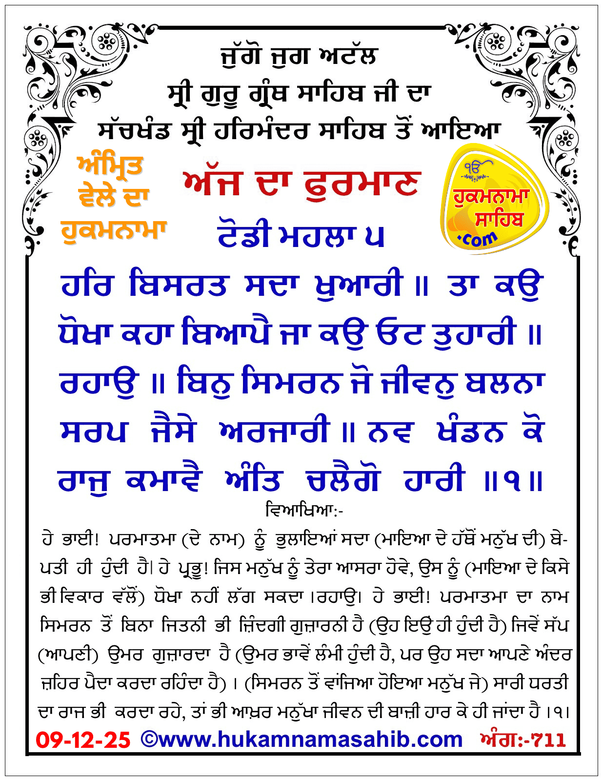 Amrit Wele Da Hukamnama Sachkhand Sri Harmandir Sahib Amritsar
