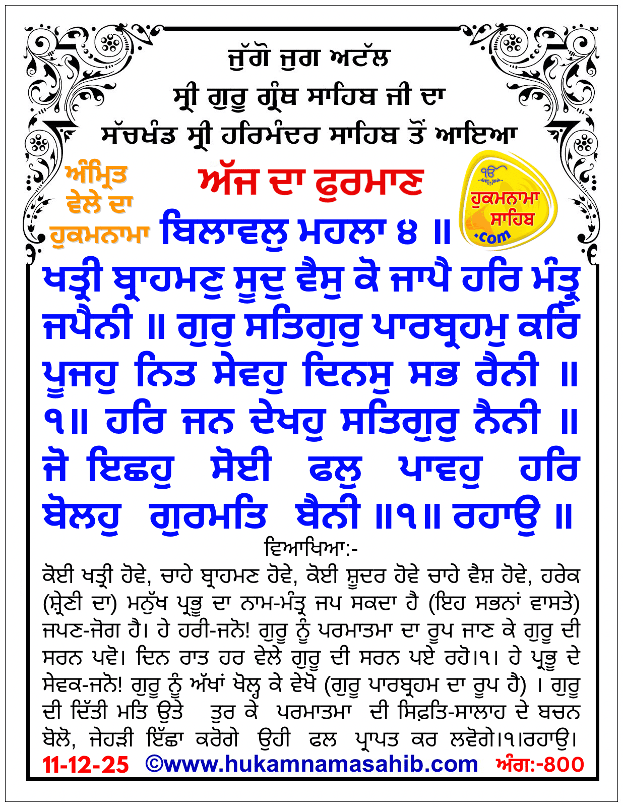 Amrit vele da Hukamnama Sri Darbar Sahib Amritsar
