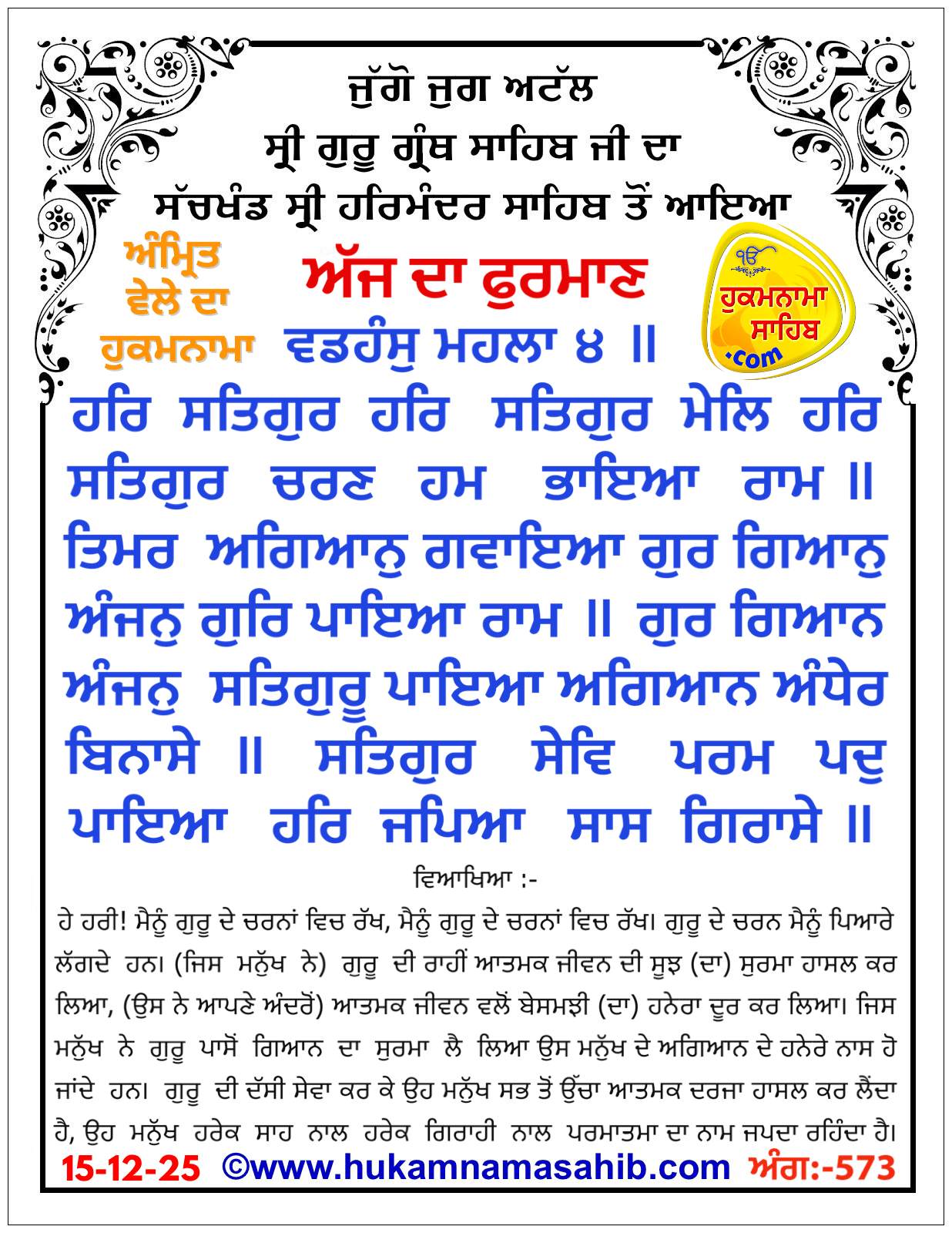 AMRIT VELE DA HUKAMNAMA SRI DARBAR SAHIB, SRI AMRITSAR