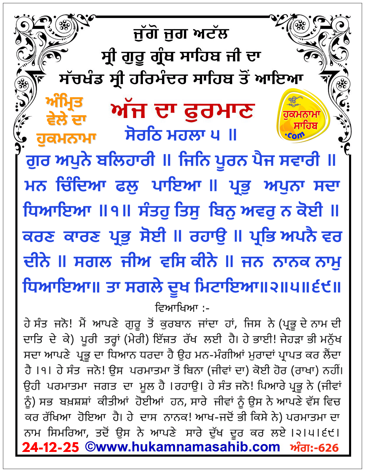AMRIT VELE DA HUKAMNAMA SRI DARBAR SAHIB, AMRITSAR