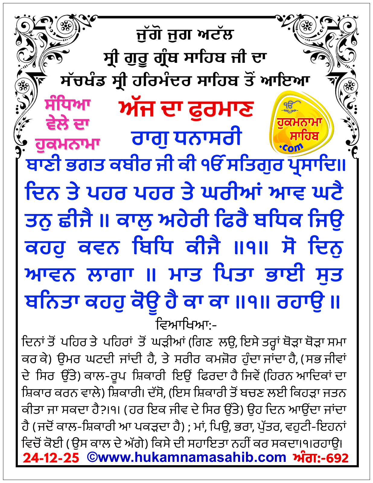 Sandhya vele da Hukamnama Sri Darbar Sahib Amritsar
