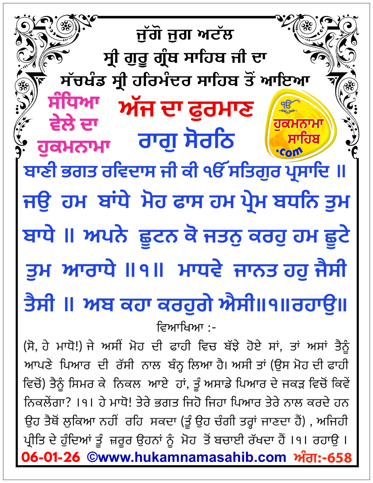 Sachkhand Sri Harmandir Sahib Amritsar Vekha Hoea Sandhiya Wele Da Mukhwak