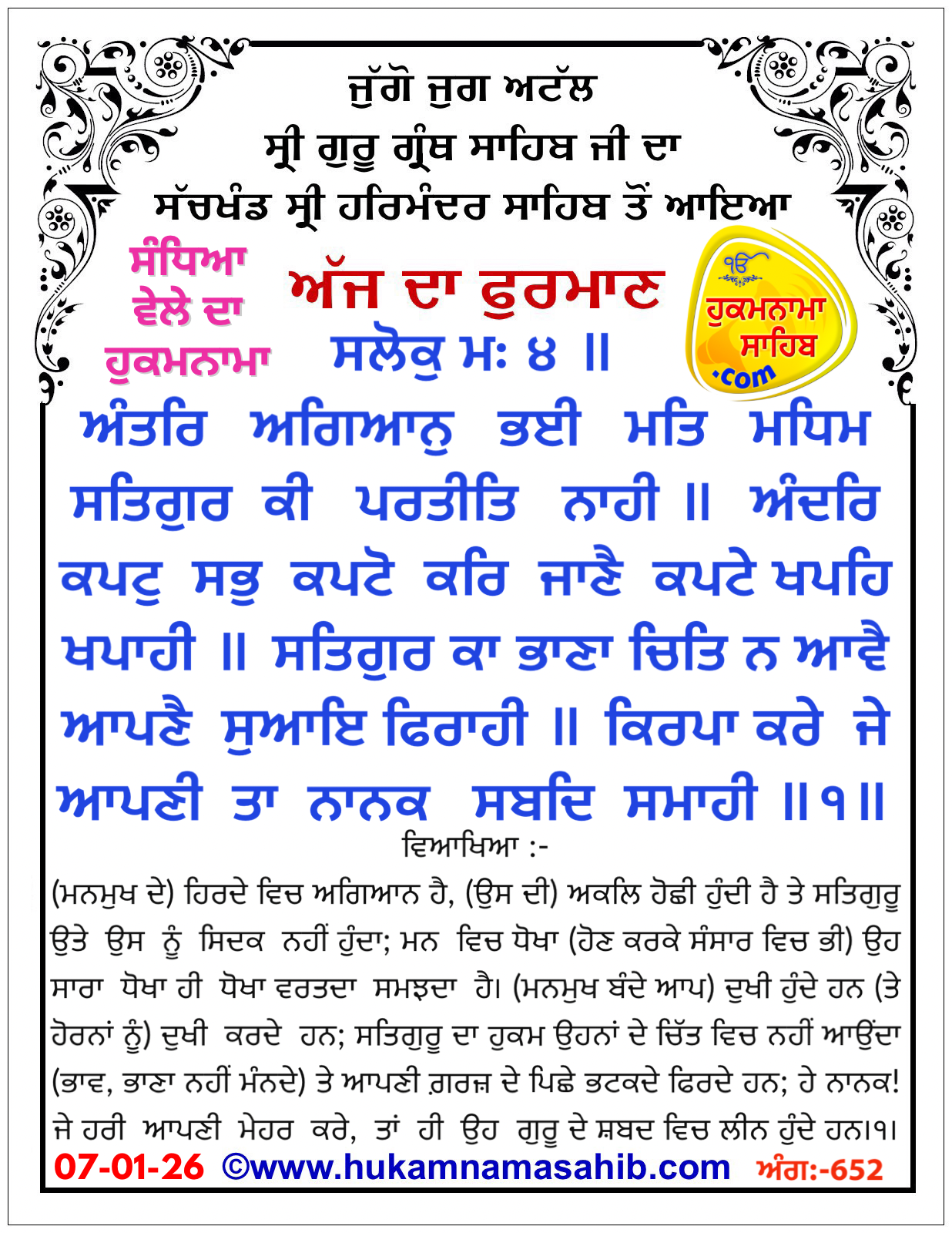 Sandhia Vele da Hukamnama Sachkhand Sri Harmandir Sahib Amritsar
