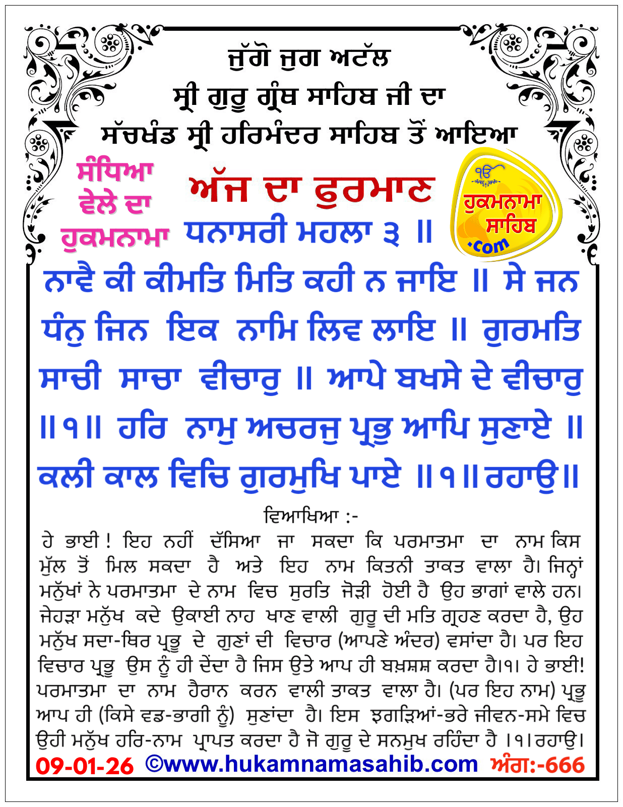 Sandhia vele da Hukamnana, Sri Darbar Sahib, Sri Amritsar