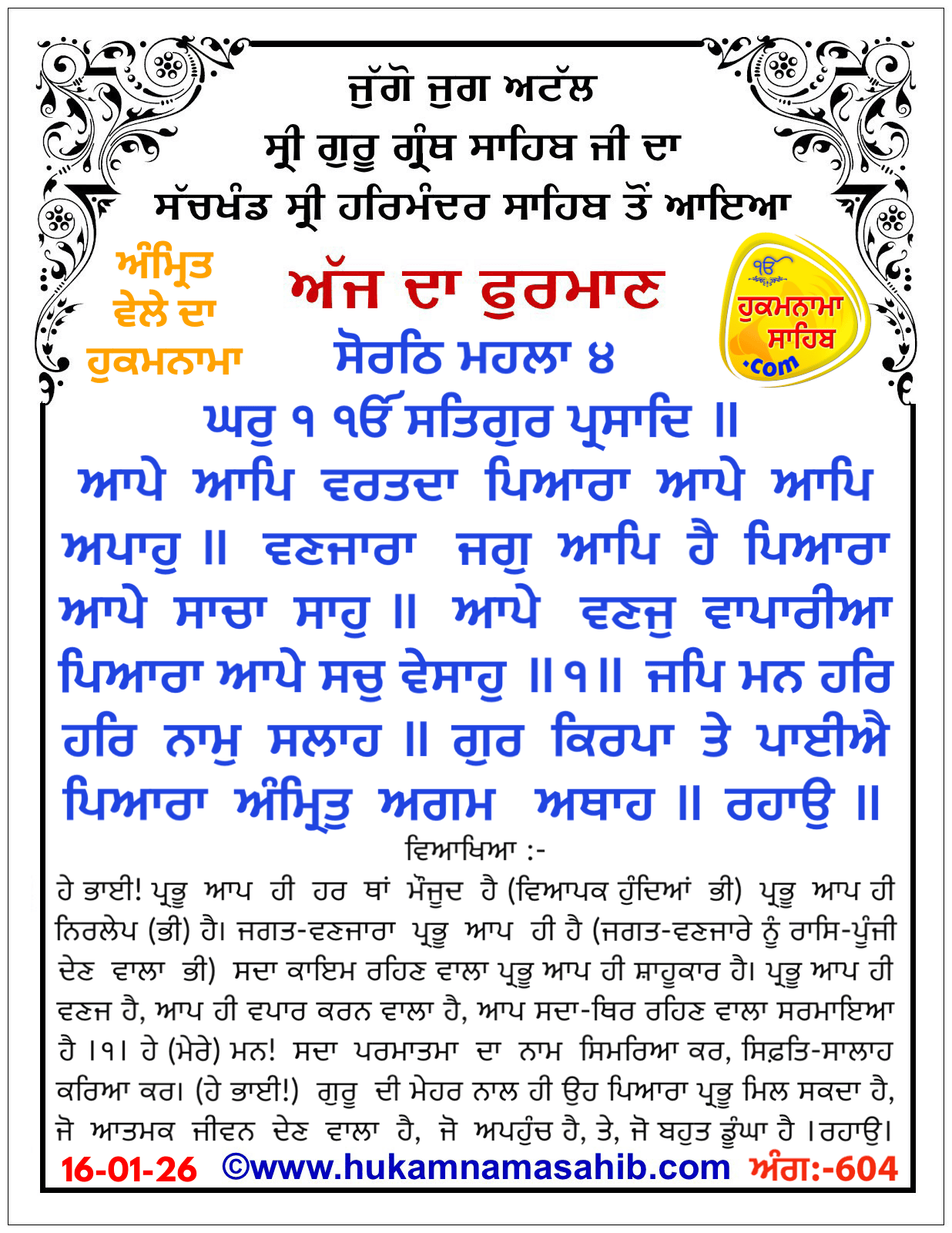 AMRIT VELE DA HUKAMNAMA SRI DARBAR SAHIB AMRITSAR