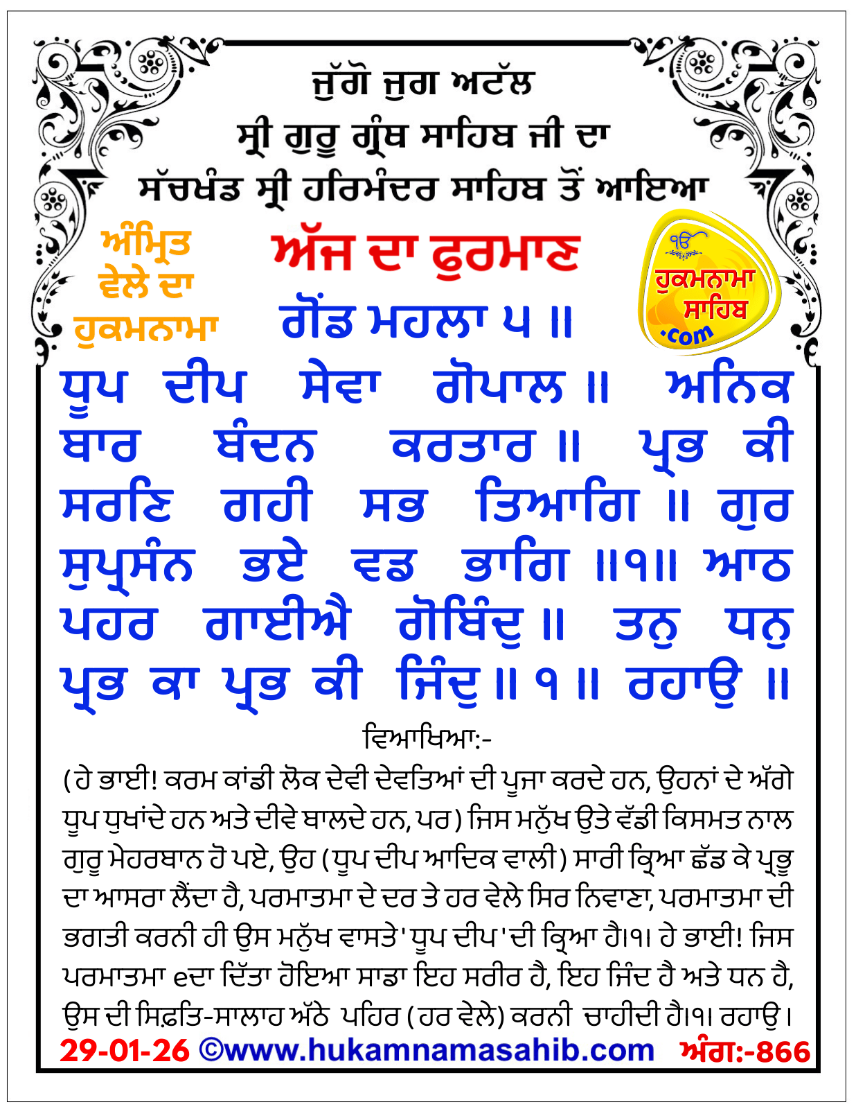 AMRIT VELE DA HUKAMNAMA SRI DARBAR SAHIB AMRITSAR