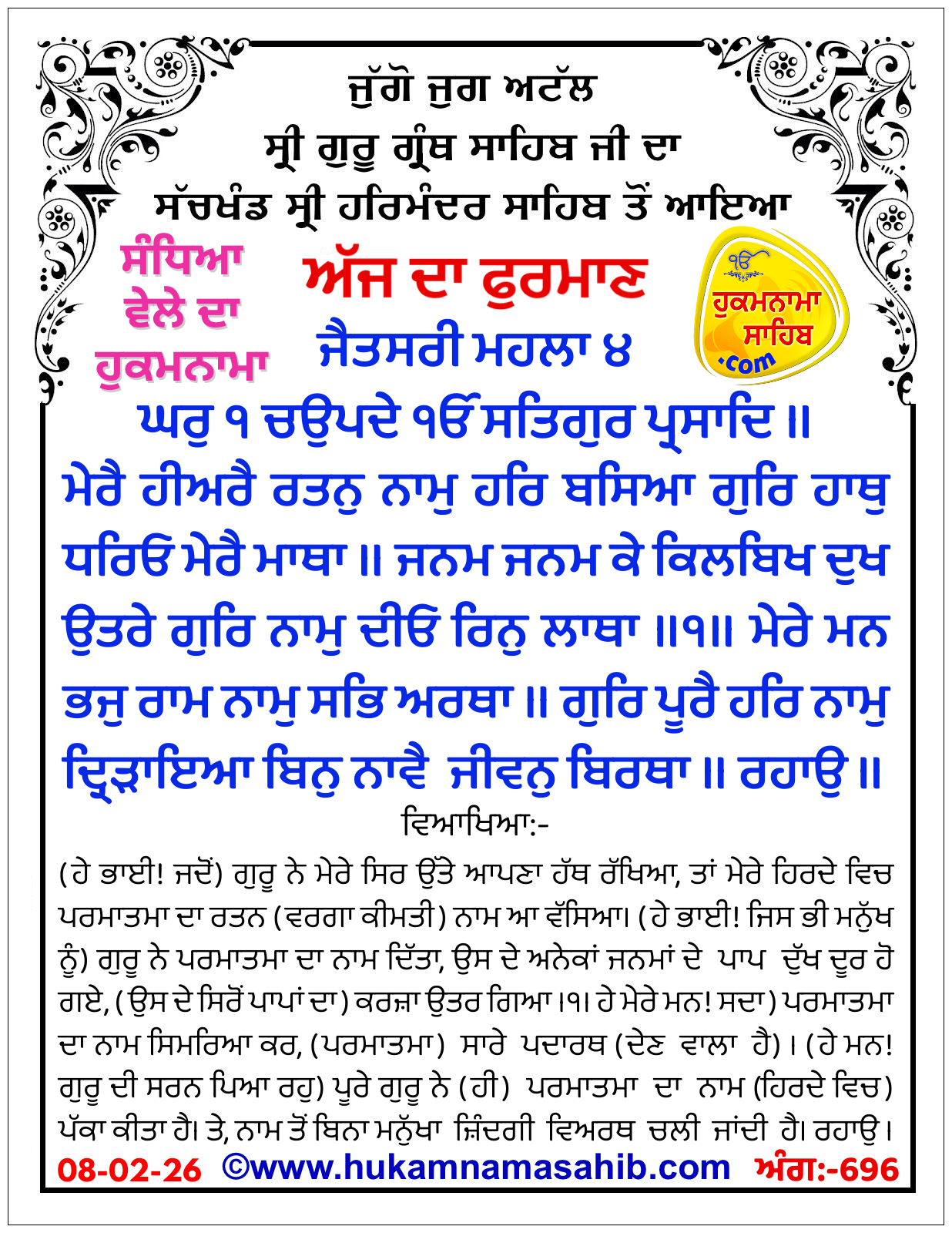 Ang 696, Date : 08-02-2026