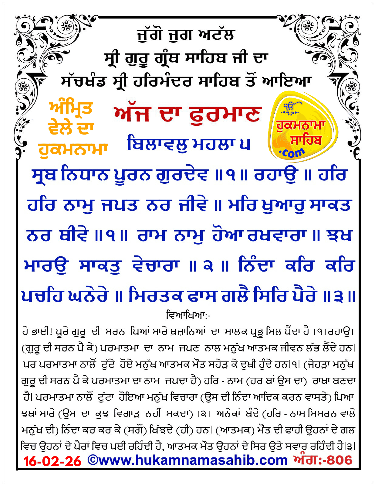 Amrit Vele da Hukamnama Sachkhand Sri Harmandir Sahib, Amritsar