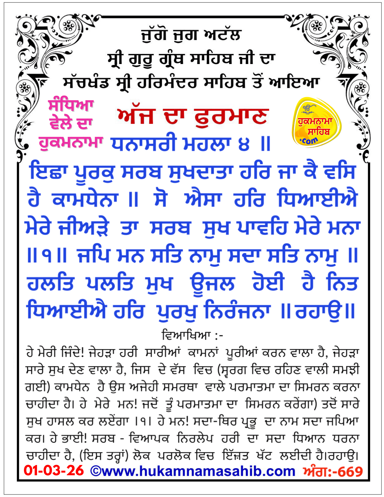 Sandhiya vele da Hukamnama Sri Darbar Sahib, Amritsar
