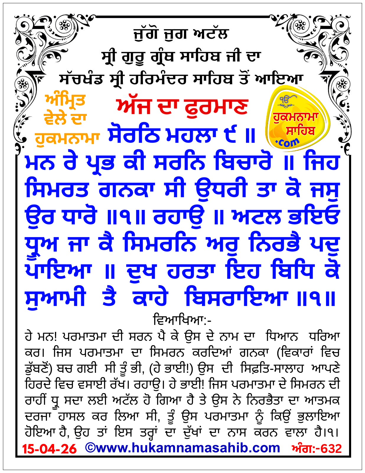 Amrit Wele Da Mukhwak Sachkhand Sri Harmandir Sahib Amritsar
