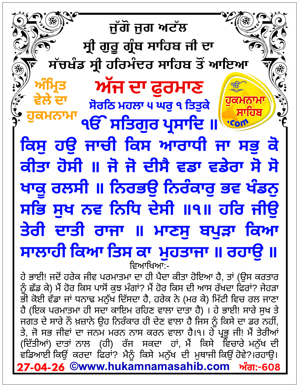 Amrit Wele Da Mukhwak Sachkhand Sri Harmandir Sahib Amritsar